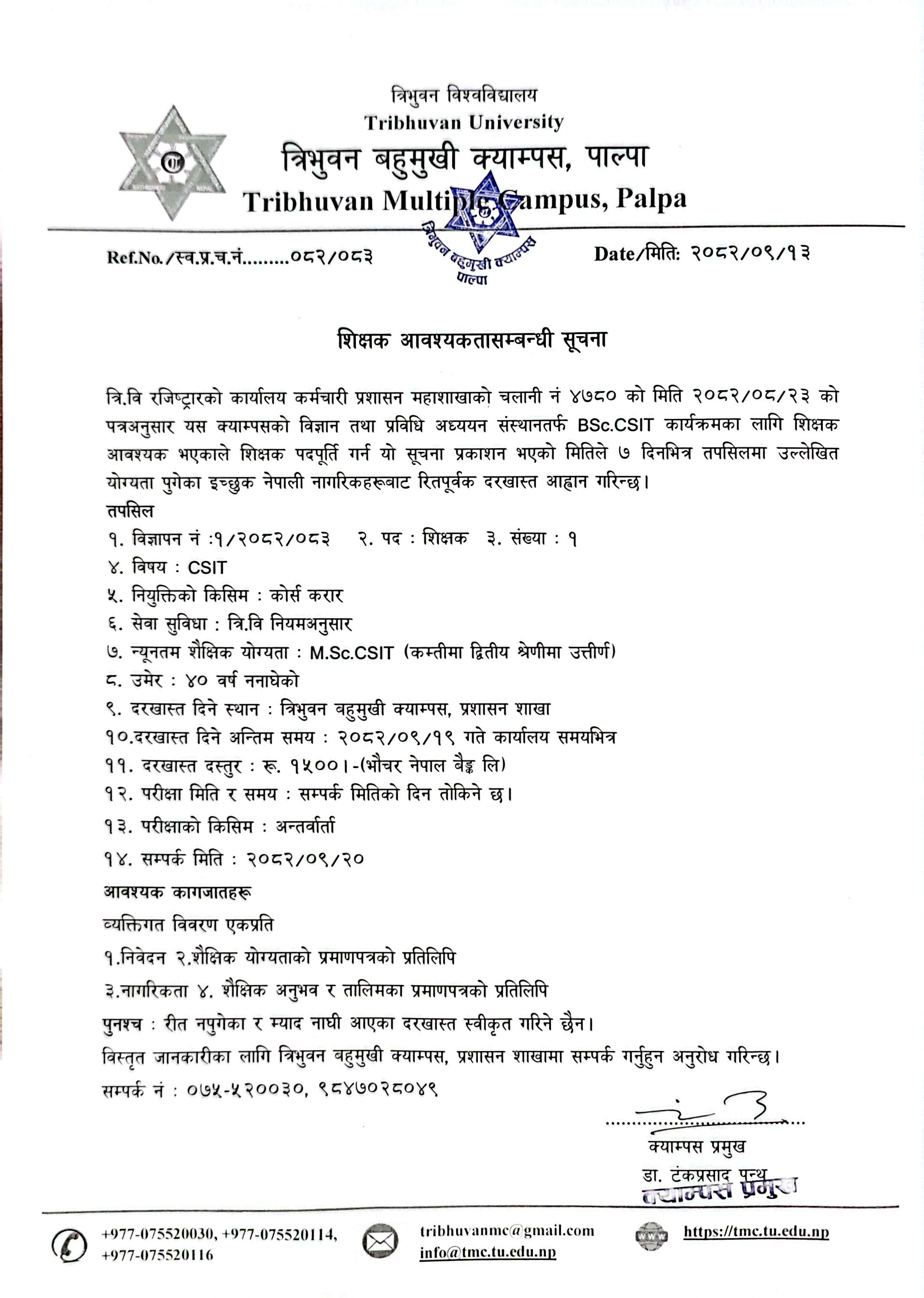 एम.एड. प्रथम सेमेस्टरको परीक्षा फारामसम्बन्धी सूचन...