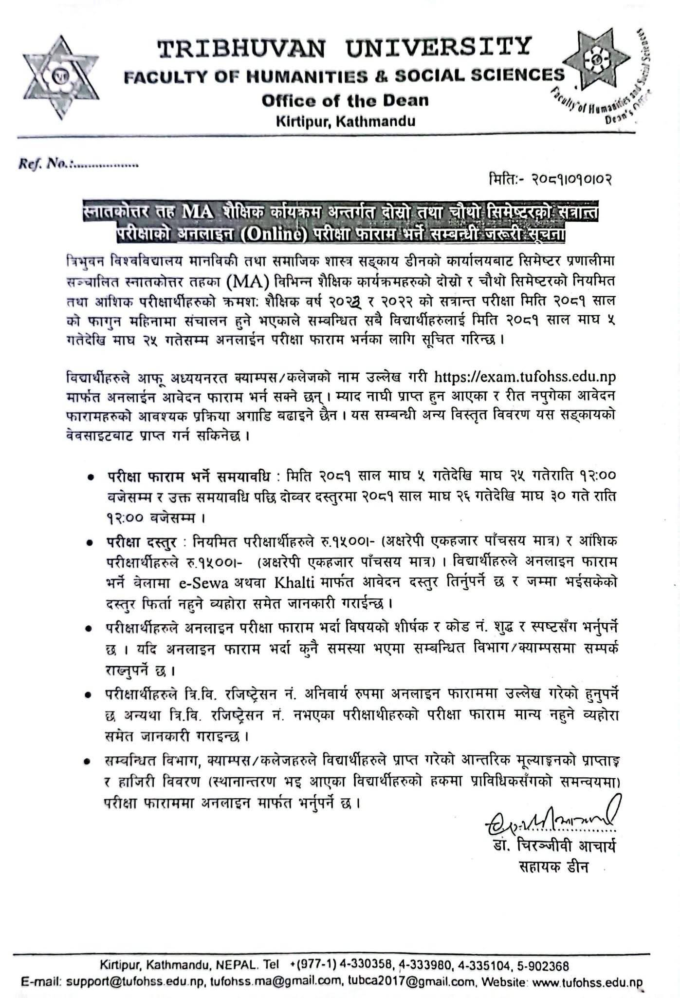 MA दाेस्राे र चाैथाे सेमेस्टरकाे परीक्षा फारम भर्ने सम्बन्धी सूचना ।