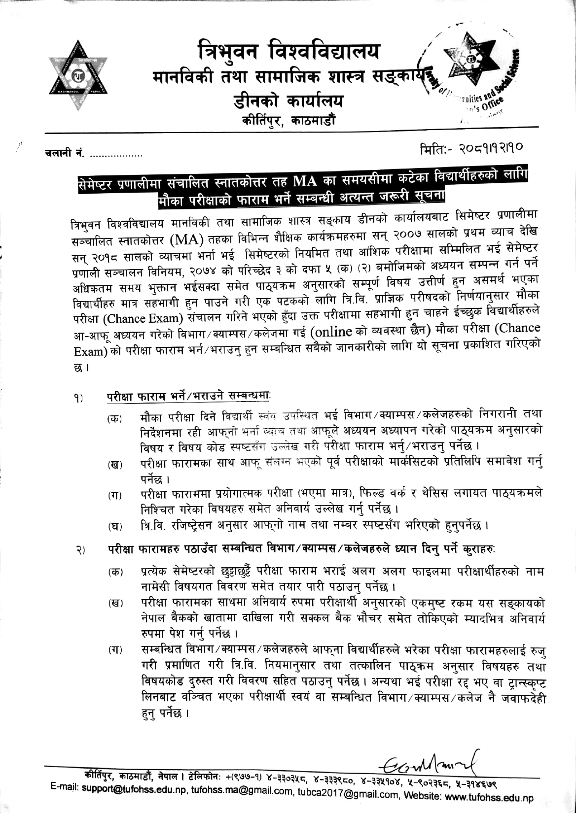 MA का समयसीमा कटेका विद्यार्थीहरूका लागि मौका परीक्षासम्बन्धी सूचना।